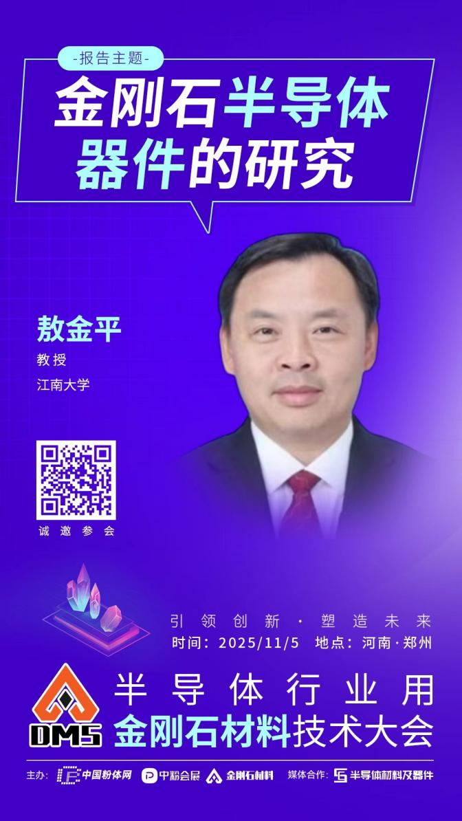 2025年11月5日,中國粉體網(wǎng)將在河南•鄭州舉辦“2025半導體行業(yè)用金剛石材料技術大會”。屆時,我們邀請到江南大學敖金平教授出席本次大會并作題為《金剛石半導體器件的研究》的報告,報告將介紹團隊在日盲紫外探測器、金剛石光電探測器響應度提升及性能優(yōu)化等方面的研究,并對金剛石半導體電力電子器件、微波功率器件的研究作展望。