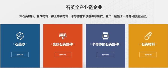 公司主要產(chǎn)品有:高純石英砂、石英管/棒/板/砣/錠/筒、摻雜功能石英玻璃、高純合成石英材料、光伏/半導體用石英器件等。主要應用于光源、光學、光伏、半導體、激光、航空航天等領域。弘揚石英專注產(chǎn)品研發(fā),憑借一體化的全產(chǎn)業(yè)鏈優(yōu)勢、行業(yè)領先的高質(zhì)量產(chǎn)品,與上下游龍頭企業(yè)建立長期穩(wěn)定的合作關系。