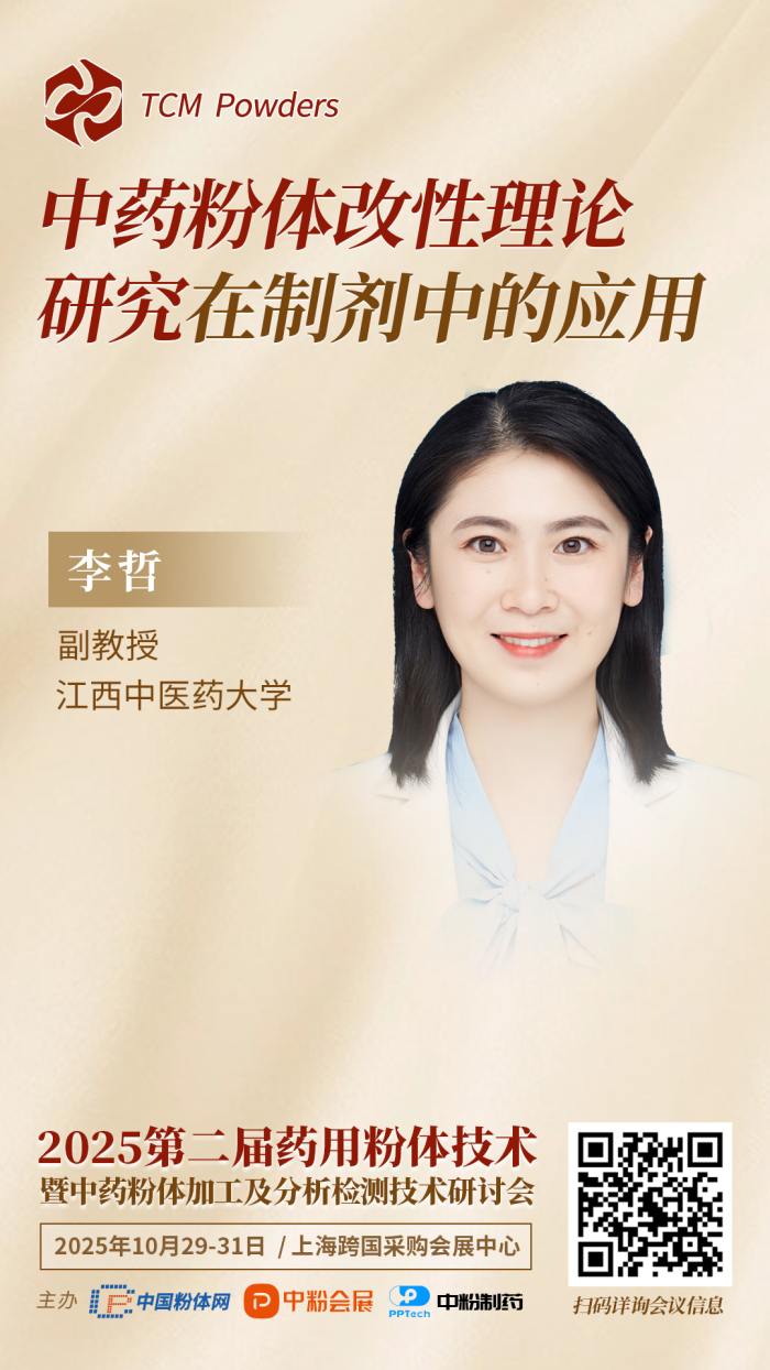 聚焦“從粉體技術(shù)、論中藥工藝”為主題,10月29-31日,中國粉體網(wǎng)將于2025IPIE上海高端粉體裝備與科學(xué)儀器展覽會(huì)期間,同期舉辦“2025第二屆藥用粉體技術(shù)暨中藥粉體加工及分析檢測技術(shù)研討會(huì)”,屆時(shí)江西中醫(yī)藥大學(xué)李哲副教授為大家?guī)怼?strong>中藥粉體改性理論研究在制劑中的應(yīng)用》的主題報(bào)告。報(bào)告主講人將講述課題組聚焦中藥固體制劑粒子成型這一核心關(guān)鍵環(huán)節(jié),以中藥提取物多組分雜糅導(dǎo)致玻璃化轉(zhuǎn)變溫度低易結(jié)塊這一現(xiàn)象為切入點(diǎn),提出了“內(nèi)生橋”驅(qū)動(dòng)的高載藥量中藥固體制劑粒子成型機(jī)制,系統(tǒng)揭示了在外加機(jī)械力、包衣液或潤濕劑等誘導(dǎo)或激發(fā)下,中藥內(nèi)部粒子間可發(fā)生塑性形變互相嵌合或液化連接等變化,產(chǎn)生“內(nèi)生橋”,促進(jìn)粒子成型;在該理論指導(dǎo)下,構(gòu)建中藥固體制劑成型關(guān)鍵技術(shù),實(shí)現(xiàn)高載藥量中藥固體制劑的制備。