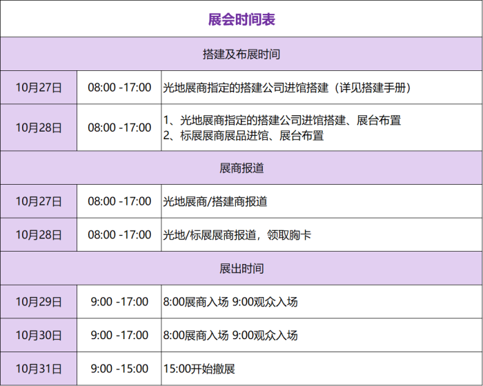 注:請嚴(yán)格按照規(guī)定的時間進行布撤展,如超時需支付加班費