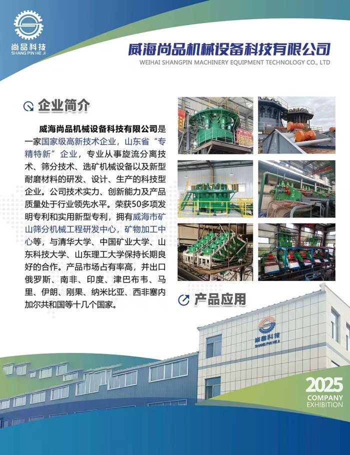 威海尚品機(jī)械設(shè)備科技有限公司,成立于2013年4月,是一家專業(yè)從事機(jī)械設(shè)備設(shè)計、旋流分離技術(shù)研發(fā)、新型耐磨材料研發(fā)生產(chǎn)以及旋流器選礦EPC工程的科技型企業(yè)。企業(yè)有嚴(yán)格的質(zhì)量管理體系,通過了ISO9001質(zhì)量體系認(rèn)證、ISO14001環(huán)境管理體系認(rèn)證、OHSAS18001職業(yè)健康安全管理體系認(rèn)證。