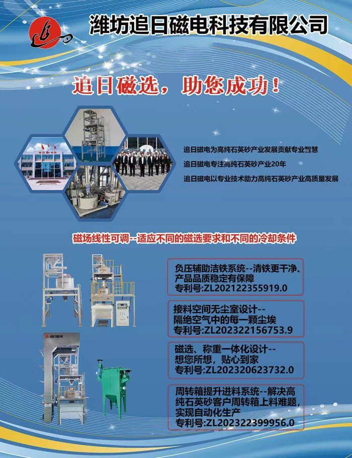 中國粉體網(wǎng)于將于2025年11月20-21號(hào)在江蘇省徐州市舉辦“ 2025(第九屆)全國石英大會(huì)暨展覽會(huì) ”,濰坊追日磁電科技有限公司邀您一同參加。