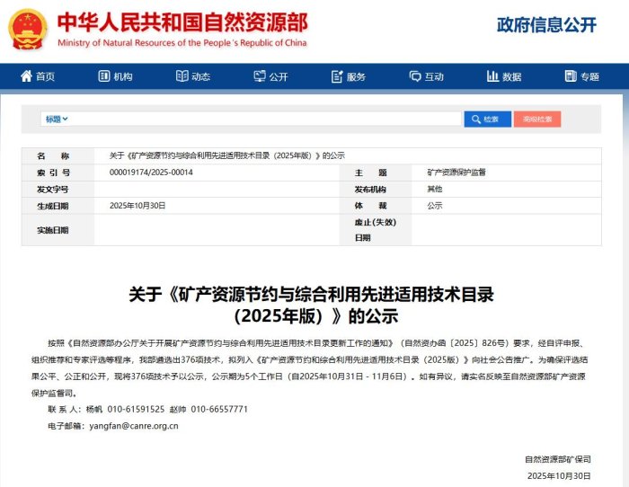 中國(guó)粉體網(wǎng)訊 10月30日,自然資源部公示了《礦產(chǎn)資源節(jié)約與綜合利用先進(jìn)適用技術(shù)目錄(2025年版)》,其中非金屬類(lèi)技術(shù)49項(xiàng),涉及螢石、高硅白云質(zhì)灰?guī)r、石灰石、鱗片石墨、硅灰石、煤矸石、高嶺土、石英、菱鎂礦、尾礦、砂石骨料等相關(guān)的高效采礦技術(shù)、高效選礦技術(shù)、綜合利用技術(shù)、綠色低碳技術(shù)、數(shù)字化智能化技術(shù)。
