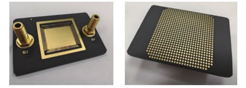 集成微流道結(jié)構(gòu)的陶瓷管殼的正背面實(shí)物圖
