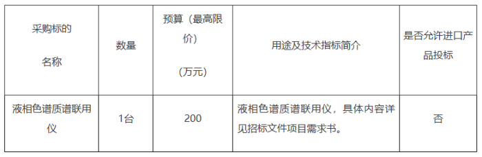項(xiàng)目名稱:南開(kāi)大學(xué)環(huán)境科學(xué)與工程學(xué)院液相色譜質(zhì)譜聯(lián)用儀采購(gòu)項(xiàng)目