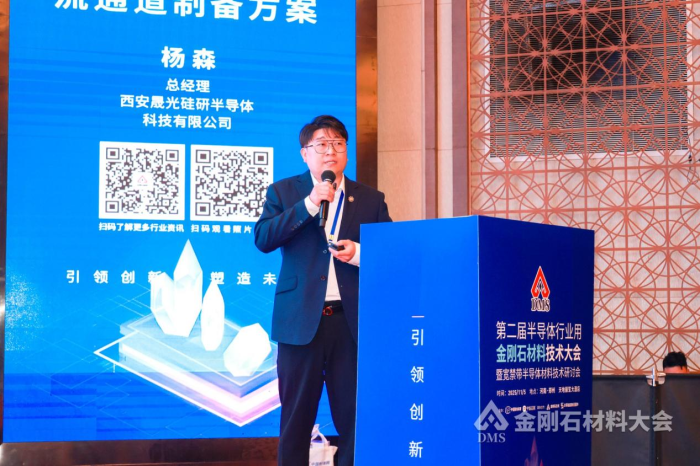西安晟光硅研半導體科技有限公司總經(jīng)理楊森作《水導激光技術基于大尺寸金剛石高品質(zhì)分片及微流通道制備方案》報告