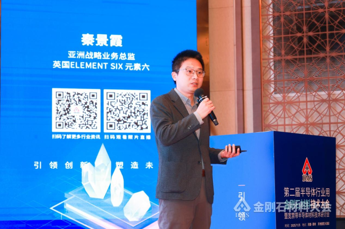 Element Six(元素六)亞洲戰(zhàn)略業(yè)務總監(jiān)秦景霞(肖驥代)作《元素六公司在半導體行業(yè)的金剛石解決方案》報告