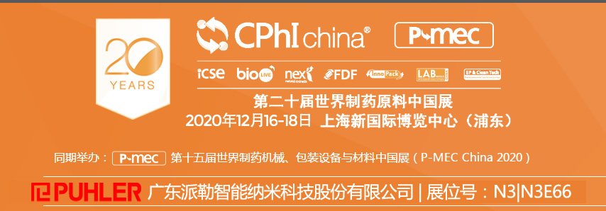 2020年CPhI China將匯聚3,400余家國內(nèi)外優(yōu)質(zhì)展商,覆蓋制藥生產(chǎn)企業(yè)、經(jīng)銷商/進(jìn)出口企業(yè)、醫(yī)藥銷售公司、生物制藥及技術(shù)公司、制藥機(jī)械、合同研發(fā)及外包、監(jiān)管/市場(chǎng)、食品飲料/保健食品/美容化妝品公司、實(shí)驗(yàn)室建設(shè)與儀器、冷鏈及物流、環(huán)保與工程、包裝材料/給藥系統(tǒng)業(yè)、制藥工程、自動(dòng)化/機(jī)器人等領(lǐng)域,廣東派勒智能納米科技股份有限公司誠邀您蒞臨現(xiàn)場(chǎng),歡度這場(chǎng)專屬于制藥人的盛宴!