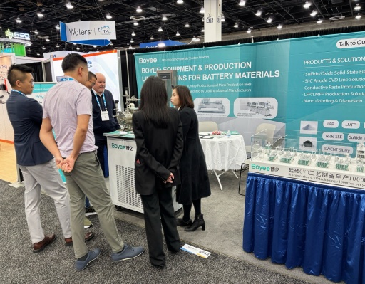 2025 年 10 月 7 - 9 日,美國底特律亨廷頓廣場會議中心,THE BATTERY SHOW NORTH AMERICA(北美電池展)盛大召開。作為全球鋰電池材料納米制備設備及智能化產線整體解決方案的行業(yè)領先企業(yè),Boyee 博億工業(yè)攜新一代干法 / 濕法工藝、關鍵材料定制化產線方案參展,向全球伙伴展現前沿實力。01前沿工藝,解鎖鋰電材料智造新可能博億展臺(Booth 5743)人頭攢動