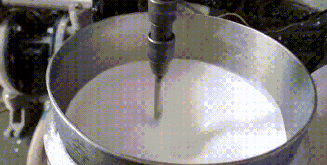 實驗選用的機型和使用的鋯球確定好了,接下來就進入來料預(yù)攪拌分散過程,預(yù)攪拌分散是初步將來料的氧化鋯漿料攪拌均勻,將凝固成團的漿料打散、混合、均質(zhì),為接下來的研磨工作作準(zhǔn)備。因本次來料已經(jīng)過了預(yù)分散過程,在這里只需要5的分鐘的分散就可以了。