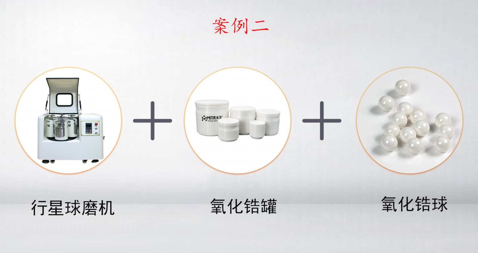 選型特點(diǎn):性價(jià)比高,3-5分鐘內(nèi)可直接獲取到這個(gè)粒徑的粉體,缺點(diǎn)是剛玉罐的磨損比其他材質(zhì)相對(duì)較大,對(duì)于純度有要求的可參考其他案例選型。