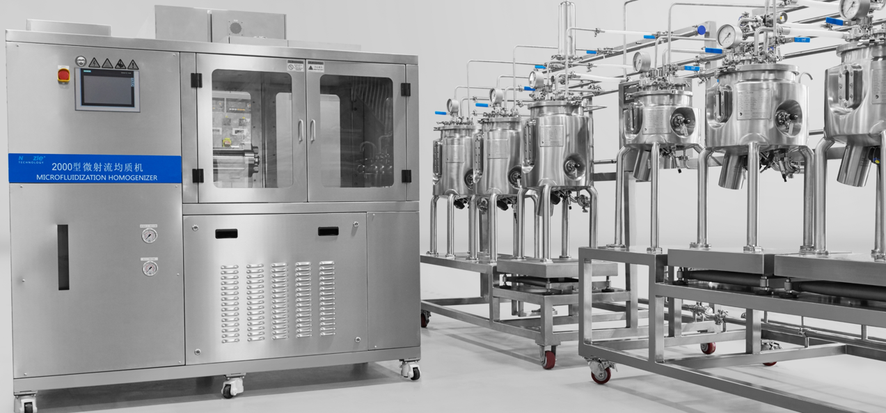 微射流均質(zhì)機(jī)是一種通過(guò)電氣控制的液壓站內(nèi)的液壓油來(lái)給液壓缸加壓,以此來(lái)驅(qū)動(dòng)柱塞進(jìn)行正位移的、往復(fù)運(yùn)動(dòng),通過(guò)單向閥的作用,柱塞給物料加壓,加壓后的物料通過(guò)一個(gè)特別設(shè)計(jì)的微孔工作噴腔,液體通過(guò)不同微米孔徑的噴腔會(huì)形成不同的均質(zhì)壓力,超高的液體流速形成的高剪切力和撞擊力,對(duì)通過(guò)的物料進(jìn)行連續(xù)的微?;饔玫臋C(jī)器。