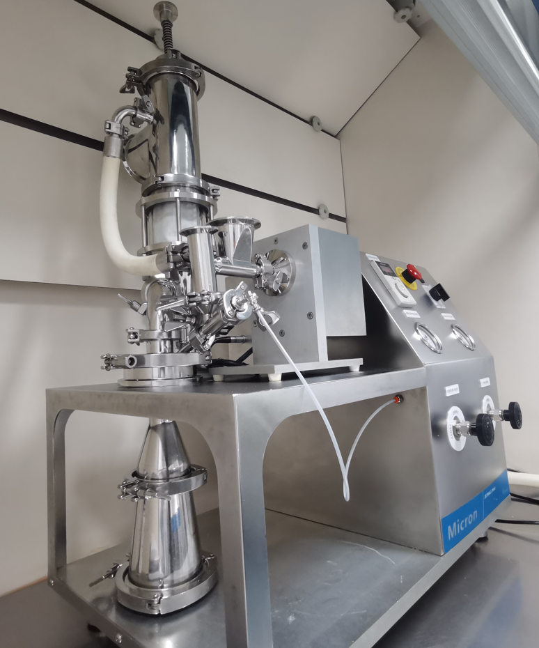 通常情況下,進行氣流粉碎前,待粉碎的物料本身不能有明顯的硬結(jié)塊,是由于氣流粉碎機的物料入口的直徑?jīng)Q定的,否則會發(fā)生物料返噴現(xiàn)象,造成收率降低且生產(chǎn)效率不佳。其次,水溶性的結(jié)晶性物料,在較低的粉碎壓力條件下就可以粉碎到10微米左右。最后,物料本身是否容易引起靜電吸附,導(dǎo)致粉碎腔內(nèi)物料堆積或者收集管路堵塞,導(dǎo)致無法正常進行粉碎操作。