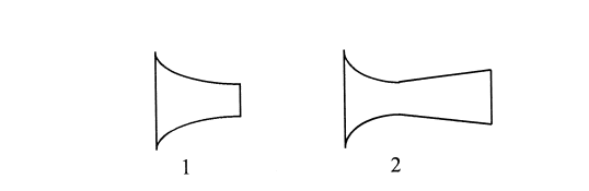 噴嘴最常見的是突變型(圖1),在喉部提供聲速。出口壓力約為初始氣體壓力的50%,氣體膨脹發(fā)生在噴嘴喉部之外,從而循環(huán)氣體并促進顆粒碰撞。另一種是拉瓦爾形噴嘴(圖2)。在這種情況下,氣體在擴張部分膨脹,變成亞音速度,增加射流的作用以及循環(huán)氣流的速度,進而提高生產(chǎn)能力和粉碎細度。