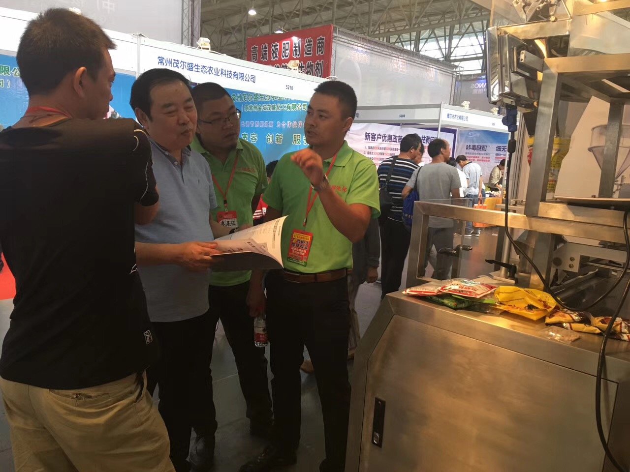 捷奧包裝機械負責(zé)人謝經(jīng)理為客戶介紹公司產(chǎn)品。