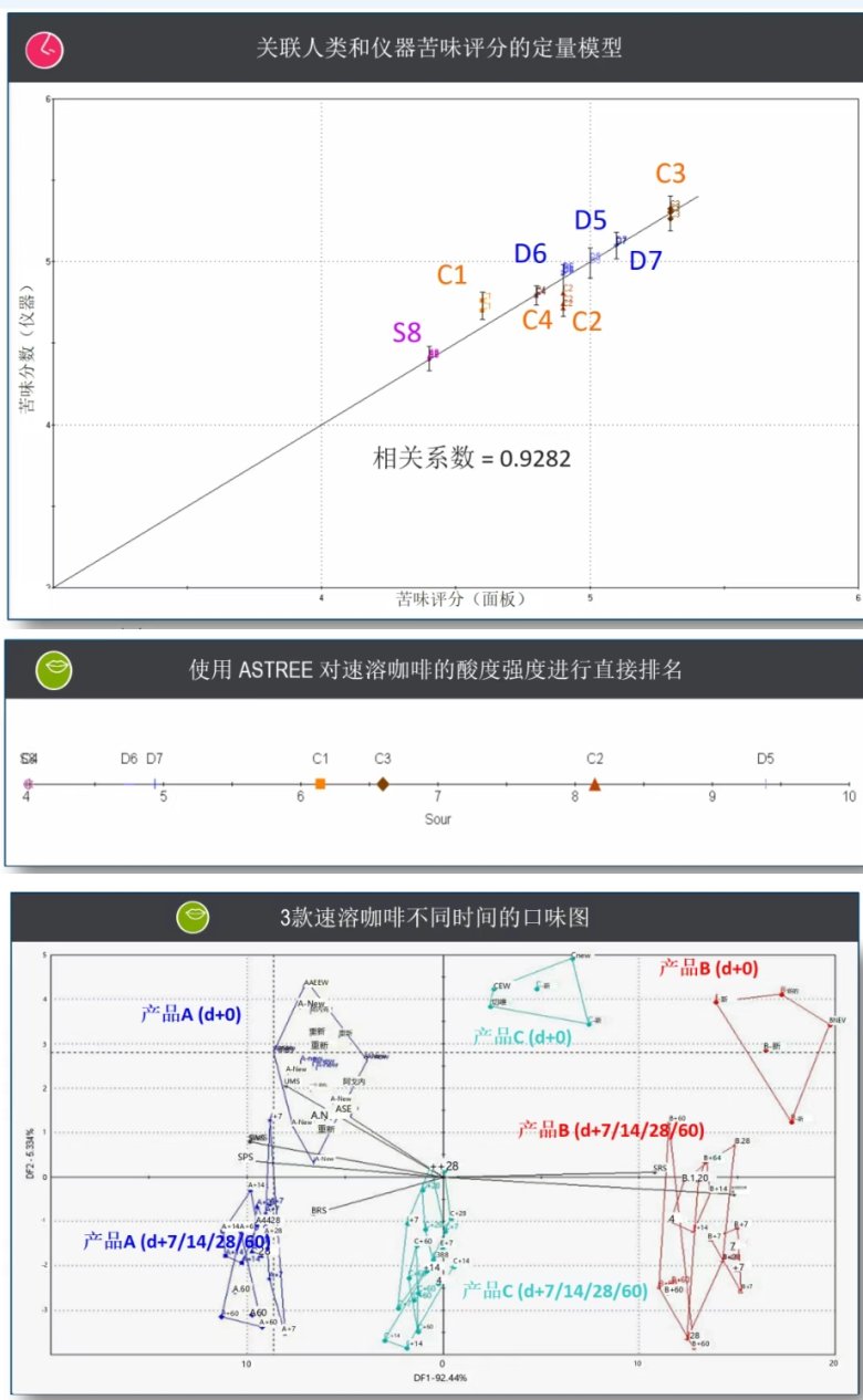 《指導(dǎo)原則》強(qiáng)調(diào)了口感設(shè)計在兒童藥物開發(fā)全生命周期(從處方前研究到上市后變更)中的重要性。它要求申請人: 重視口感屬性:明確要求評估藥物的基本味道(苦、甜、酸、咸、鮮、澀等)、嗅覺(氣味)、口腔感覺(澀感、灼燒感、沙粒感、油膩感等)以及余味。 科學(xué)評價方法:鼓勵采用客觀、靈敏、可量化的評價手段,結(jié)合必要的人體感官評價(需符合倫理),建立科學(xué)的口感評價體系。 高效篩選掩味策略:強(qiáng)調(diào)需要系統(tǒng)性地篩選和應(yīng)用掩味技術(shù)(如包衣、添加矯味劑、形成復(fù)合物等),并對掩味效果進(jìn)行科學(xué)驗證。 關(guān)注兒童特異性:指出兒童的味覺感知與成人存在顯著差異(如對苦味更敏感,對甜味偏好更強(qiáng)),評價需考慮年齡差異。 一、速溶咖啡感官分析的挑戰(zhàn):人鼻的局限與需求 二、電子鼻登場:嗅覺的“科學(xué)之眼” 三、電子鼻在速溶咖啡中的核心應(yīng)用與價值 清晰展示了電子鼻分析下香氣/苦味/酸度隨品牌或時間變化的顯著差異和趨勢。 四、超越感官:電子鼻帶來的變革性意義 電子鼻在速溶咖啡感官分析中的應(yīng)用,其意義遠(yuǎn)不止于提供數(shù)據(jù): 提升品質(zhì)管控精度與效率:從原料進(jìn)廠、生產(chǎn)過程監(jiān)控(如烘焙終點判斷、風(fēng)味均勻性)、到最終成品檢驗、包裝評估,實現(xiàn)全鏈條快速、客觀的感官指標(biāo)監(jiān)控,確保出廠產(chǎn)品品質(zhì)穩(wěn)定如一。 驅(qū)動產(chǎn)品創(chuàng)新與優(yōu)化:基于精準(zhǔn)的風(fēng)味數(shù)據(jù),研發(fā)人員可以更有的放矢地調(diào)整配方、工藝,開發(fā)出更符合目標(biāo)消費者口味的新品,或優(yōu)化現(xiàn)有產(chǎn)品。 保障品牌聲譽與消費者信任:通過科學(xué)手段確保風(fēng)味一致性,有效應(yīng)對摻假質(zhì)疑、保質(zhì)期投訴,維護(hù)品牌形象。 決策支持的科學(xué)化:無論是選擇包裝材料、設(shè)定保質(zhì)期、還是進(jìn)行產(chǎn)品定位,電子鼻提供的客觀數(shù)據(jù)都是管理層做出更明智決策的有力支撐。 標(biāo)準(zhǔn)化與合規(guī)性:為感官評價建立可量化的標(biāo)準(zhǔn),有助于滿足日益嚴(yán)格的食品安全和品質(zhì)規(guī)范要求。