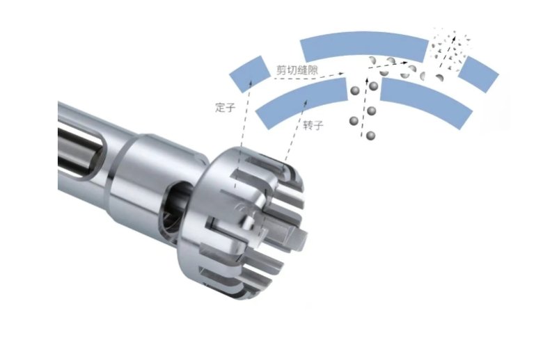 是一種用于將固體、液體或氣體分散到連續(xù)介質(zhì)中的工業(yè)設(shè)備,廣泛應(yīng)用于化工、食品、醫(yī)藥、涂料、化妝品等多個領(lǐng)域。操作過程中,將分散刀頭插入樣品中,馬達(dá)帶動轉(zhuǎn)子高速轉(zhuǎn)動,物料沿軸向被吸入分散頭,然后這些介質(zhì)呈放射狀以較高速度通過轉(zhuǎn)子與定子之間的齒槽。高轉(zhuǎn)速的轉(zhuǎn)定子之間的微小間隙產(chǎn)生極強(qiáng)的剪切力和破碎力,從而達(dá)到良好的分散效果。因此,針對不同類型的樣品,不同結(jié)構(gòu)的分散刀頭,對最終樣品的處理效果至關(guān)重要。