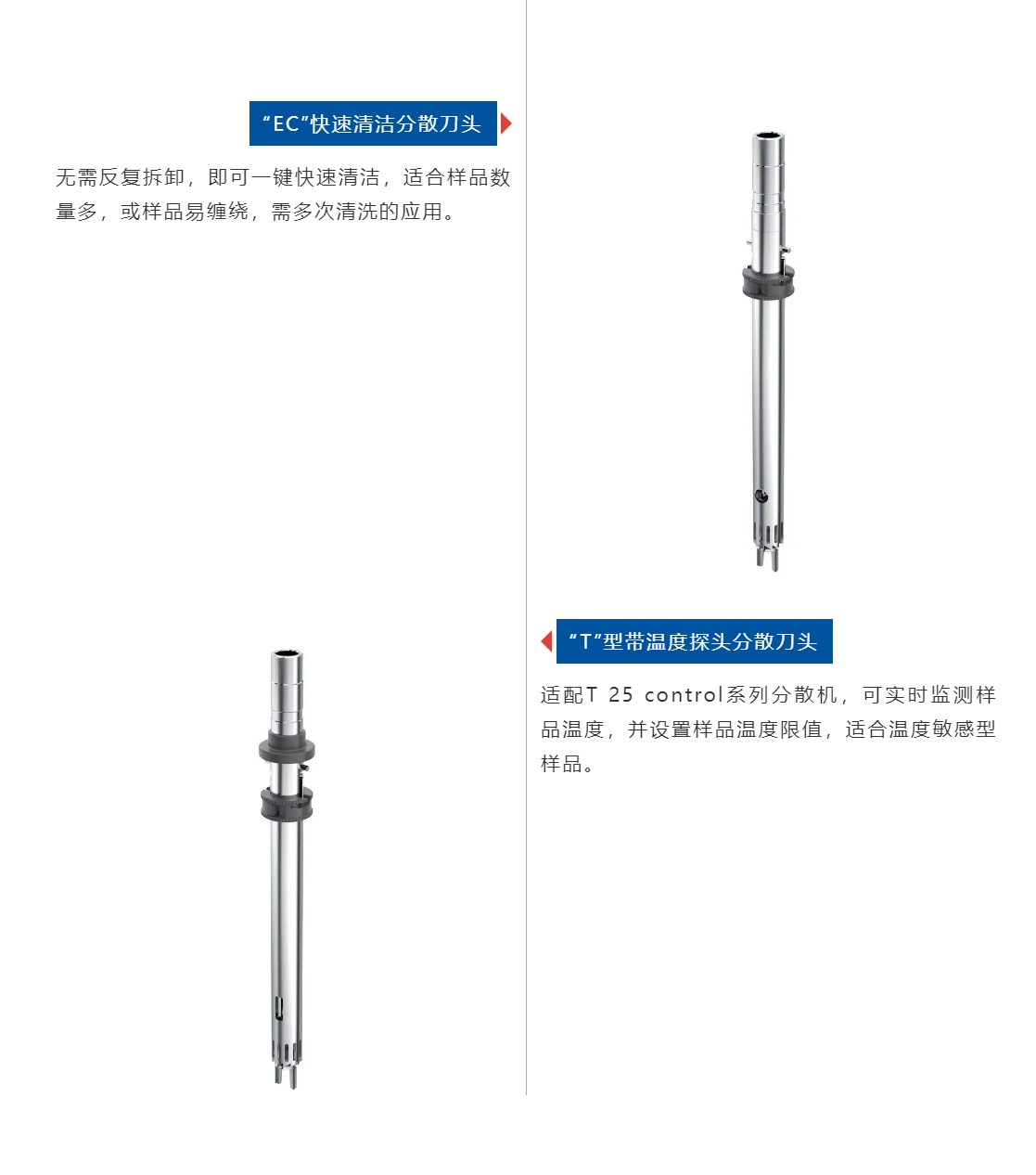 一般來說,定子直徑越大,可處理樣品的體積越大??筛鶕?jù)相應(yīng)分散刀頭的技術(shù)參數(shù)確認(rèn)樣品體積是否適合您的應(yīng)用,同時可根據(jù)技術(shù)參數(shù)確認(rèn)圓周速度,最終樣品粒度、刀頭尺寸等諸多細(xì)節(jié)。