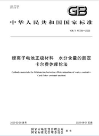 正極材料作為鋰離子電池的核心組成之一,水分含量直接關(guān)系電池性能、壽命及安全性。2025年2月,我國(guó)正式發(fā)布GB/T 45330—2025《鋰離子電池正極材料 水分含量的測(cè)定》標(biāo)準(zhǔn),首次統(tǒng)一鋰電正極材料水分檢測(cè)方法,該標(biāo)準(zhǔn)將于2025年9月1日正式實(shí)施。梅特勒托利多作為標(biāo)準(zhǔn)的起草單位之一,全程參與了標(biāo)準(zhǔn)編制、精密度驗(yàn)證等過程。