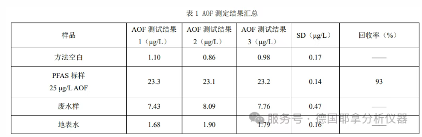 使用三個(gè)系統(tǒng)來(lái)測(cè)定標(biāo)準(zhǔn)品和水樣中的AOF: