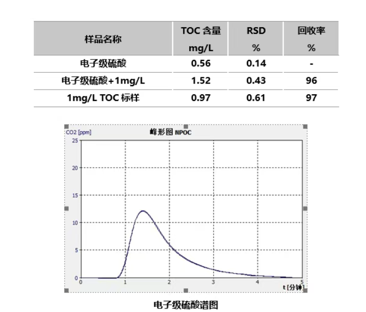 目前TOC分析已在多種電子級(jí)濕電子化學(xué)品的品控中進(jìn)行監(jiān)控,如:硫酸、鹽酸、磷酸、硼酸等各類酸,氨水、氫氧化鈉等堿,及雙氧水等化學(xué)品。