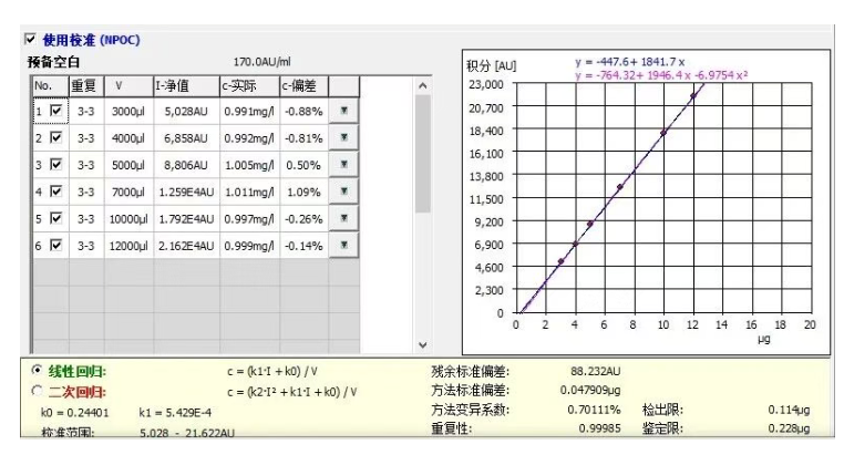 德國(guó)耶拿TOC解決方案 難點(diǎn)突破1:直接進(jìn)樣,無(wú)需稀釋 電子級(jí)試劑往往由于其純度高但待測(cè)TOC含量低,而使得允許的稀釋倍數(shù)受限。有些高純?cè)噭┫♂尯骉OC將與空白無(wú)差別,無(wú)法準(zhǔn)確定量。 以雙氧水為例,其在分解過(guò)程中會(huì)產(chǎn)生大量氧氣,同時(shí)高溫下水分會(huì)迅速氣化,測(cè)定時(shí)的氣流波動(dòng)會(huì)嚴(yán)重干擾測(cè)定結(jié)果。傳統(tǒng)分析采用稀釋進(jìn)樣的方法,而電子級(jí)的雙氧水含量特別低,稀釋后TOC含量與空白相差不大,會(huì)帶來(lái)很大的稀釋誤差,同時(shí)空氣中的CO2也會(huì)影響分析結(jié)果。 德國(guó)耶拿獨(dú)家的VITA技術(shù)用來(lái)補(bǔ)償不可避免的分析氣體流量的波動(dòng)引起的信號(hào)變化,拓寬低濃度的檢測(cè)范圍,使得TOC系統(tǒng)更精確,靈敏,穩(wěn)定。對(duì)高達(dá)70%濃度H2O2溶液無(wú)需進(jìn)行稀釋,可直接進(jìn)樣分析。同時(shí)配備高聚焦NDIR檢測(cè)器,對(duì)CO2具有更高靈敏度,可獲得更為可靠的結(jié)果,且一次進(jìn)樣可以同時(shí)分析TOC和TN參數(shù),可以實(shí)現(xiàn)高效高通量測(cè)定。 案例一:30%/70% 雙氧水TOC/TN測(cè)定 對(duì)電子級(jí)分別為30%和70%雙氧水溶液進(jìn)行直接測(cè)定,70%雙氧水RSD達(dá)到0.5%,說(shuō)明VITA流量技術(shù)很好地消除了燃燒過(guò)程中氣流波動(dòng)帶來(lái)的影響,測(cè)試樣品后對(duì)2.5ppm的標(biāo)液進(jìn)行回測(cè),回收率為103%,說(shuō)明儀器的氧化性能佳;且儀器能兼顧TN的同時(shí)測(cè)試,為品控提供有力的數(shù)據(jù)支持。 難點(diǎn)突破2:超強(qiáng)的酸堿耐受性 對(duì)于酸堿性的樣品,如果直接進(jìn)入定量閥,長(zhǎng)時(shí)間會(huì)腐蝕定量閥的密封圈和內(nèi)部器械,會(huì)加劇定量閥的損壞速度,導(dǎo)致進(jìn)樣體積不準(zhǔn)確等問(wèn)題。德國(guó)耶拿在硬件上進(jìn)行技術(shù)革新,在保證進(jìn)樣體積準(zhǔn)確性的前提下,用超純水代替樣品進(jìn)入定量閥,避免樣品對(duì)定量閥的損耗,可以長(zhǎng)時(shí)間分析酸堿性,甚至是有一定顆粒的高鹽樣品,耗材少,維護(hù)成本低。 案例二:電子級(jí)硫酸中TOC測(cè)定 考慮到高純硫酸在管道有很明顯的放熱反應(yīng),樣品稀釋測(cè)定,同時(shí)進(jìn)行加標(biāo)回收實(shí)驗(yàn)。從實(shí)驗(yàn)數(shù)據(jù)可以看出,樣品加標(biāo)回收率為96%,TOC標(biāo)樣的回收率為97%,說(shuō)明儀器對(duì)高純硫酸的基體耐受性好,能準(zhǔn)確測(cè)定電子級(jí)硫酸中低濃度TOC的含量。 案例三:電子級(jí)氨水中TOC測(cè)定 由于氨水是堿性溶液且電子級(jí)的氨水TOC濃度本身就比較低,容易吸收空氣中的CO2 ,造成結(jié)果的不準(zhǔn)確性,測(cè)試前對(duì)樣品進(jìn)行稀釋中和,同時(shí)扣除酸空白。從實(shí)驗(yàn)數(shù)據(jù)可以看出,樣品RSD均小于1%,0.1ppm的樣品加標(biāo)回收率為99%,0.1ppm TOC標(biāo)樣的回收率為102%,說(shuō)明儀器對(duì)低TOC的電子級(jí)氨水測(cè)定準(zhǔn)確性高。 難點(diǎn)突破3:儀器自動(dòng)繪制標(biāo)準(zhǔn)曲線+ 長(zhǎng)達(dá)一年校準(zhǔn)周期 對(duì)于較低TOC濃度樣品的測(cè)定,如何繪制低濃度的標(biāo)準(zhǔn)曲線顯得非常重要。由于配制標(biāo)液需要稀釋液,但實(shí)驗(yàn)室很難找到TOC為零的稀釋液,在配制溶液的過(guò)程也容易引入空氣中的CO2 ,得不到線性較好的曲線。德國(guó)耶拿multi N/C 總有機(jī)碳分析儀提供吸取不同體積繪制曲線的功能,無(wú)需人為配制曲線,線性輕松達(dá)到0.999以上,且校準(zhǔn)周期長(zhǎng)達(dá)一年,減少每次做樣前曲線繪制的人力和時(shí)間,讓您有更多的時(shí)間做重要的事情。 綜上,德國(guó)耶拿multi N/C 總有機(jī)碳分析儀能輕松應(yīng)對(duì)高純濕電子化學(xué)品超低TOC的測(cè)定需求,幫助企業(yè)實(shí)時(shí)監(jiān)控生產(chǎn)過(guò)程中的化學(xué)品純度,確保生產(chǎn)效率和產(chǎn)品質(zhì)量,提高產(chǎn)品的市場(chǎng)競(jìng)爭(zhēng)力。