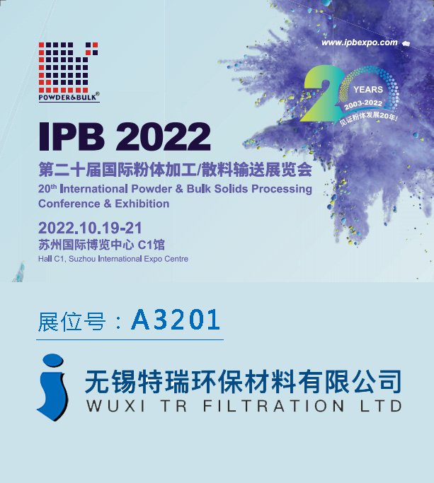 IPB2022第二十屆國(guó)際粉體加工散料輸送展覽會(huì),將于10月19日-21日在江蘇蘇州舉辦。無(wú)錫特瑞環(huán)保材料有限公司期待與您金秋十月相約美麗蘇州!