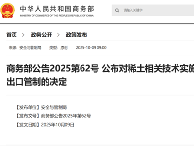 - ·事關(guān)稀土出口管制,商務(wù)部連發(fā)兩條公告